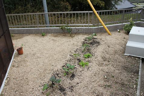これは我が家の小さな家庭菜園。こま婆が夏野菜とかかすみ草を植えてくれました。