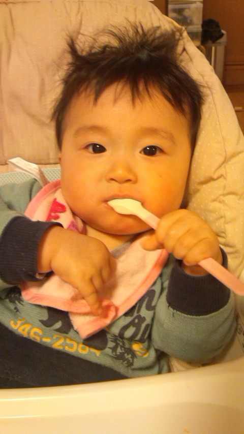 離乳食は朝ごはんはあまり進まないみたいだけど、昼夜は普通に食べてます。