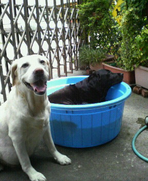 を楽しんでいるそうです。それ以外の日は涼しい時間にぶらっと散歩するか、緑道公園でスイミングするか、庭先で水遊びをしています。