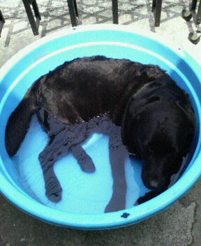 ビニールプールでは破れてしまうので、980円の大きなたらいがここ数年の水遊び定番アイテムです。多紀は中につかって、目を細めて気持ちよさそうに長い時間じ~~っとしてます。たらいの縁に顎を乗せるのがちょうど気持ちいいみたい。