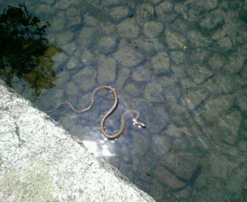 蛇は多紀にツンツンされ一目散に川の中へ非難。