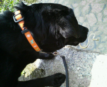 川に浮かぶ蛇を名残惜しそうに上から覗いている多紀です。蛇を咥えているわけではありませんよ~。