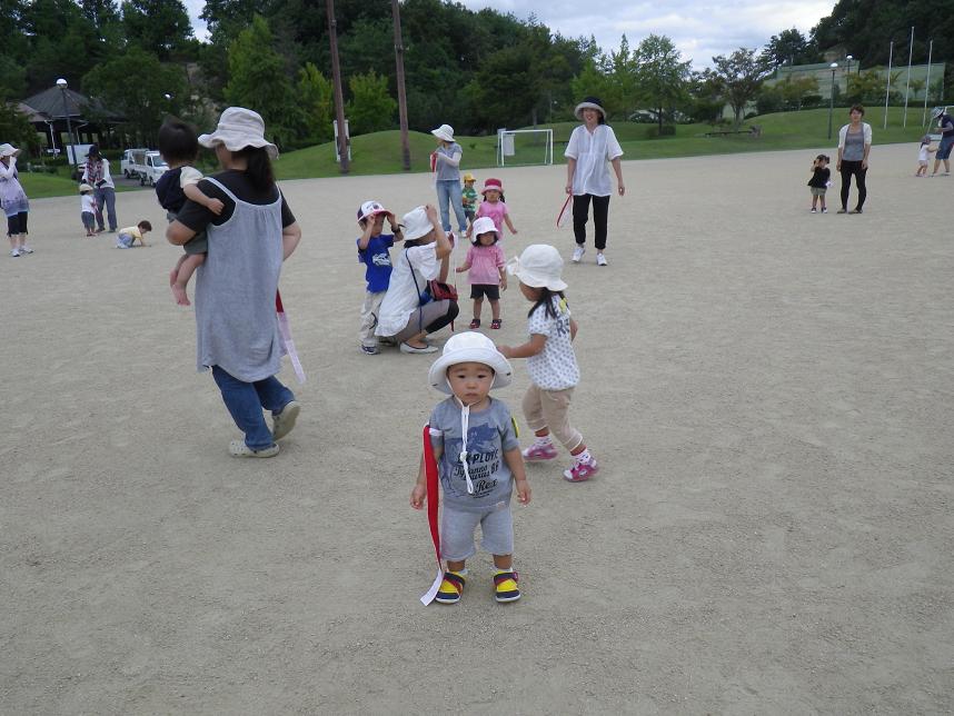 走るダチョウが面白いみたいで、いっしょに走ったりしていました。