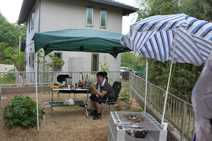 小さな庭に、犬の競技会遠征で使用していたアウトドアグッズを実家から持ってきてもらい所狭しと並べて。