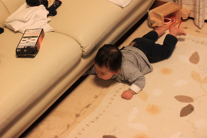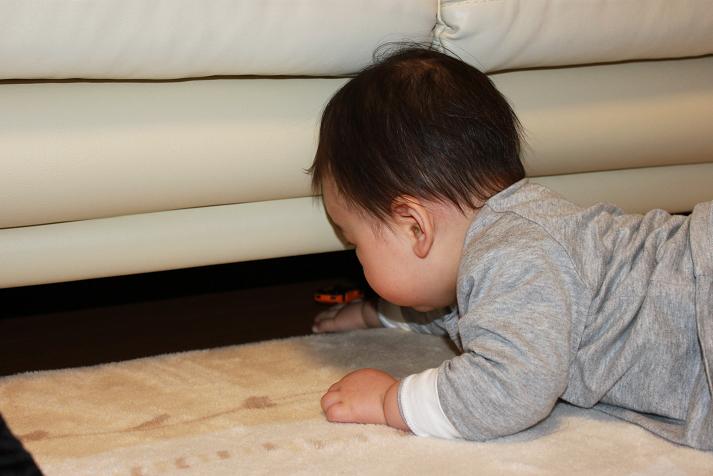 最近お気に入りのトミカの「ランボルギーニ」がよくソファの下に入り込んでいたのですが、どうも秀敏がわざと入れているようで、昨日その現場を押さえました。